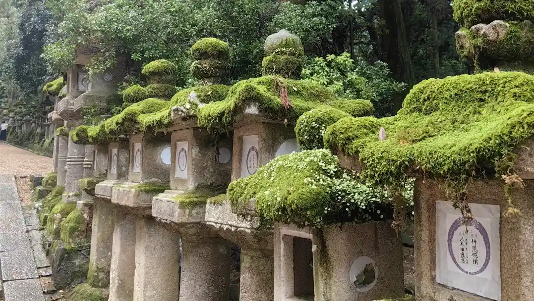 (体验喂小鹿)建立于710年,已经被列入世界文化遗产的名录。整个神社依靠在春日山山脚下,周围被苍翠秀丽的植被所环抱着,一切都显得自然而古意。