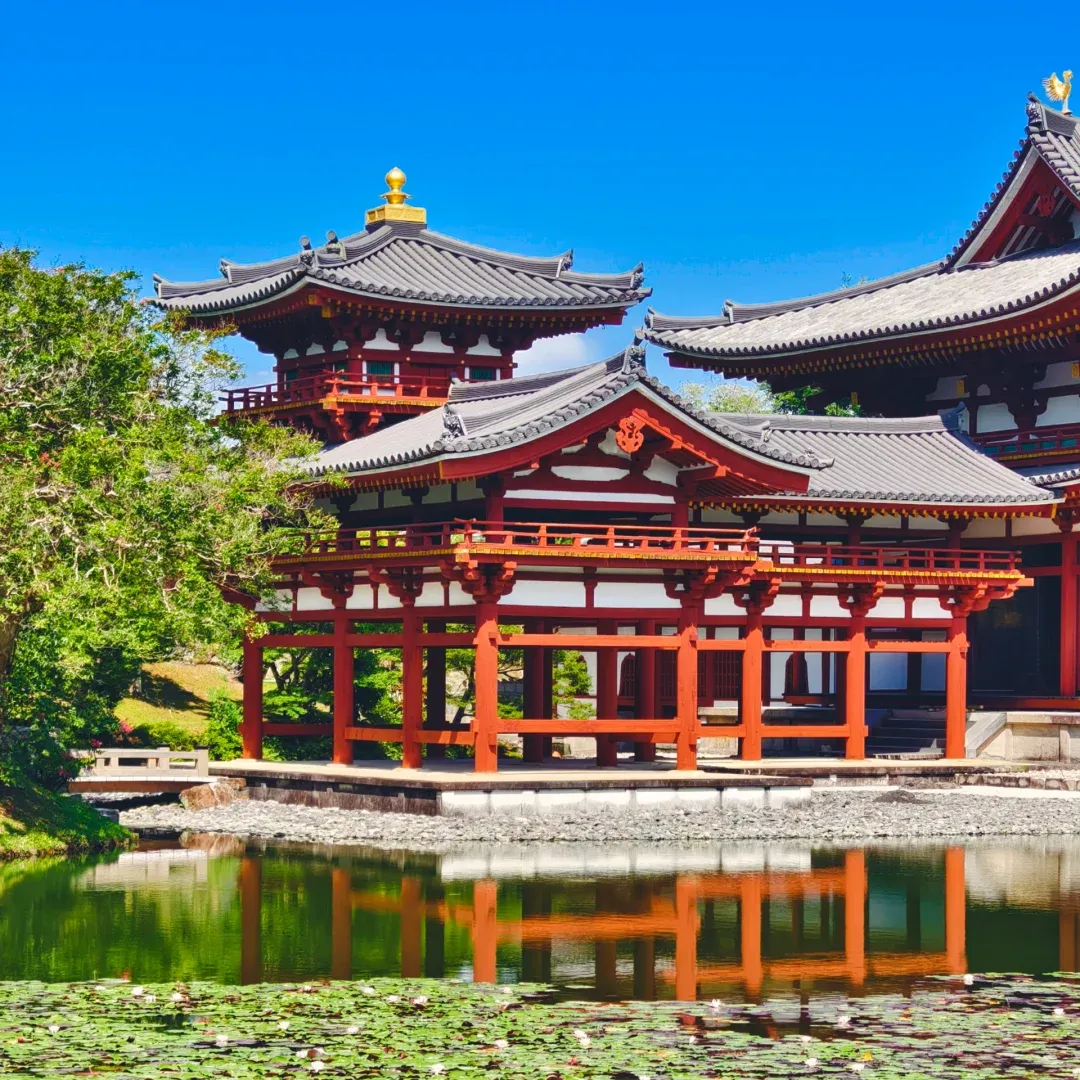 平等院的设计是古代日本人对于西方极乐世界的具体实现,构造与庭院增加了寺庙的宁静协和的感觉。院内的“凤凰堂”作为十日元硬币的图案设计而闻名,原本被称作“阿弥陀堂”,因外观如同凤凰展翅高飞。