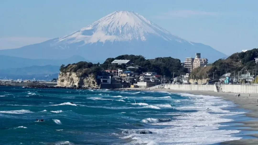 江之岛是镰仓西面的一个小岛、通过江之电小火车相连。这里深受垂钓者和风帆爱好者的青睐。天气晴朗时,西北方向可看到高耸于地平线上的富士山。