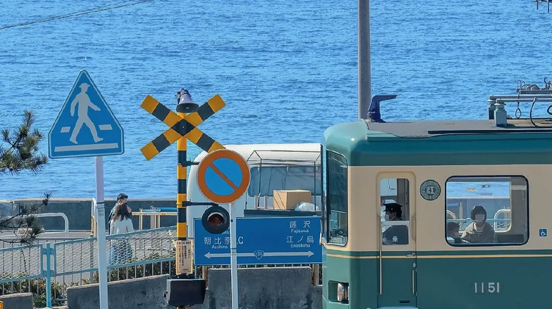仅与七里滨海岸相隔着一条国道公路,站在月台上即可远望相模湾风光;相邻的神奈川县立镰仓高等学校即是漫画中陵南高中的原型,是一代人的青春,来这一定要打卡的的灌篮高手取景地!