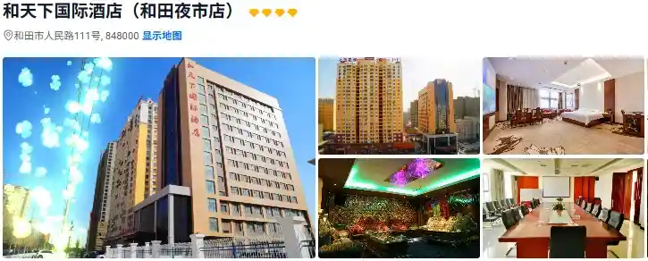 和田:和天下国际酒店 国玉大酒店 名门大酒店 九华玉龙酒店或同级