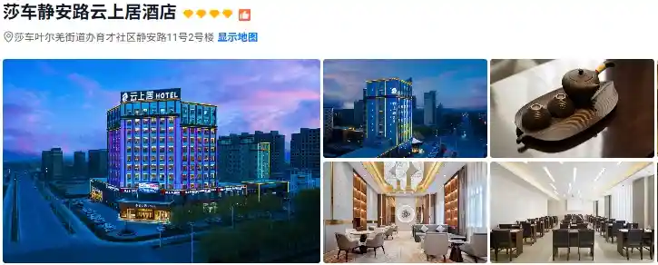 莎车/泽普:云上居酒店 金碧酒店 格林东方酒店 金胡杨酒店或同级