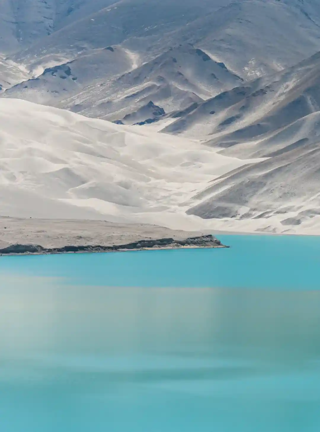 ●游览【白沙湖】(游览约40分钟左右)又叫恰克拉克湖、帕米尔高原白沙湖,是从喀什去往塔什库尔干的必经之地,位于国道边上。这里湖面如镜,白沙如雪,景观令人震撼。