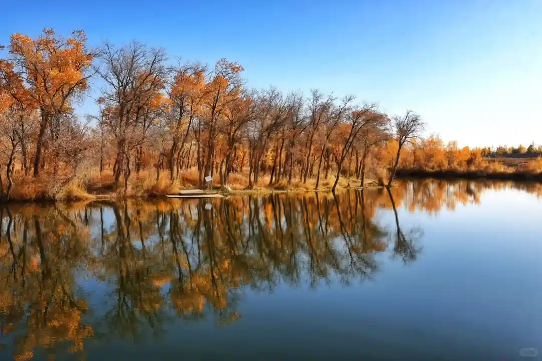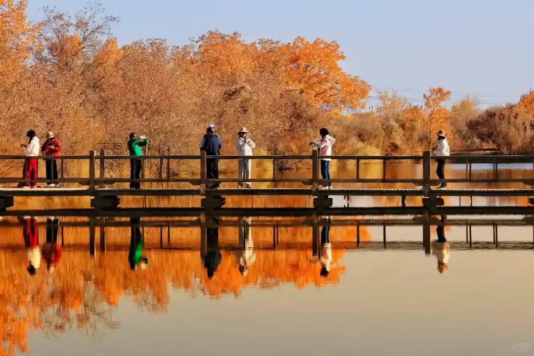 ◈早餐后,乘车前往【泽普金胡杨林】(游览约2.5小时左右)金湖杨国家森林公园位于新疆喀什地区泽普县西侧,紧靠叶尔羌河畔,是一处环境优美的沙漠绿洲,这里以上万亩的天然胡杨林为,有依绿洲中的湖水、树林修建了环境优美的园林湖景,风光旖旎。