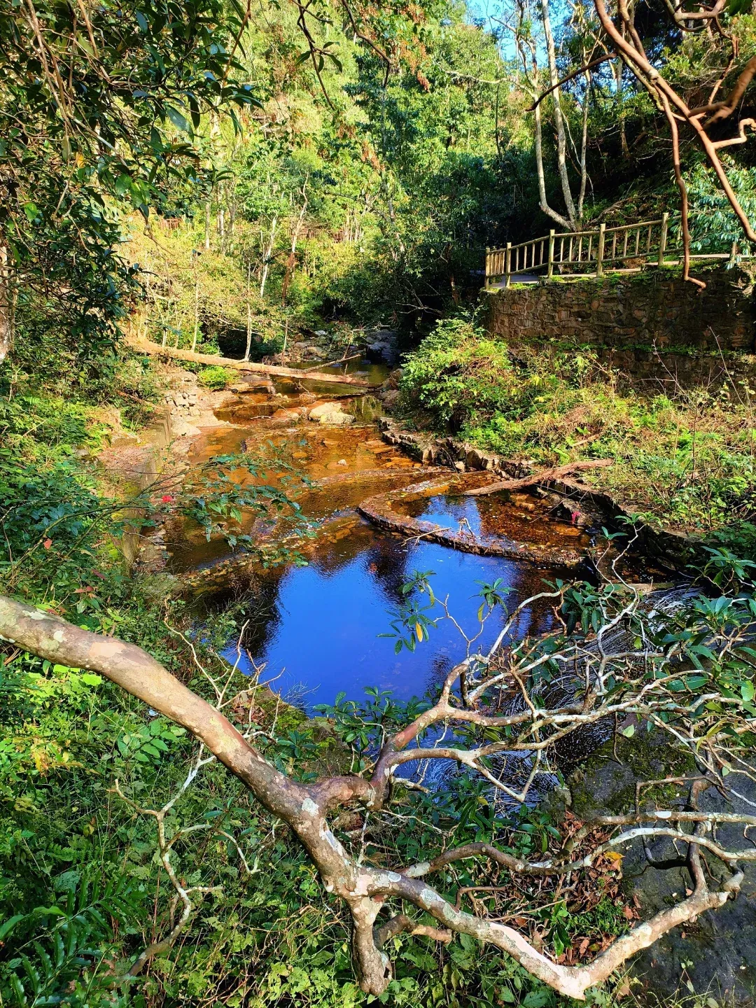 个月内的小溪,它的颜色时而是茶色的,山洪暴发的时候,它又是黑色的。