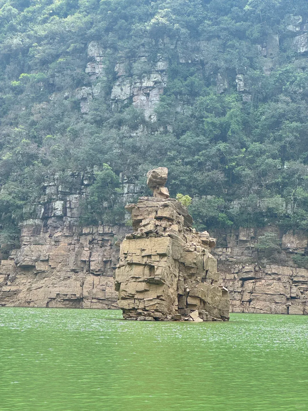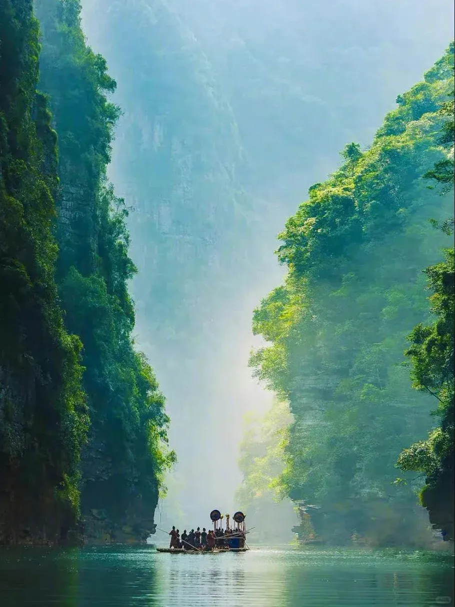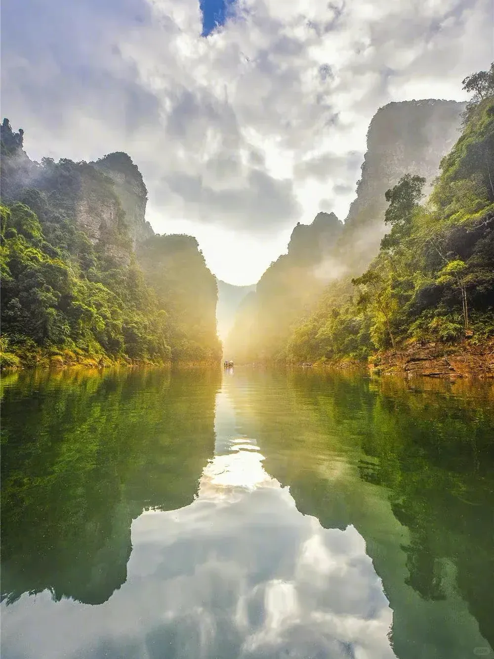 悬崖峭壁夹峙,湖光山色,峰回路转