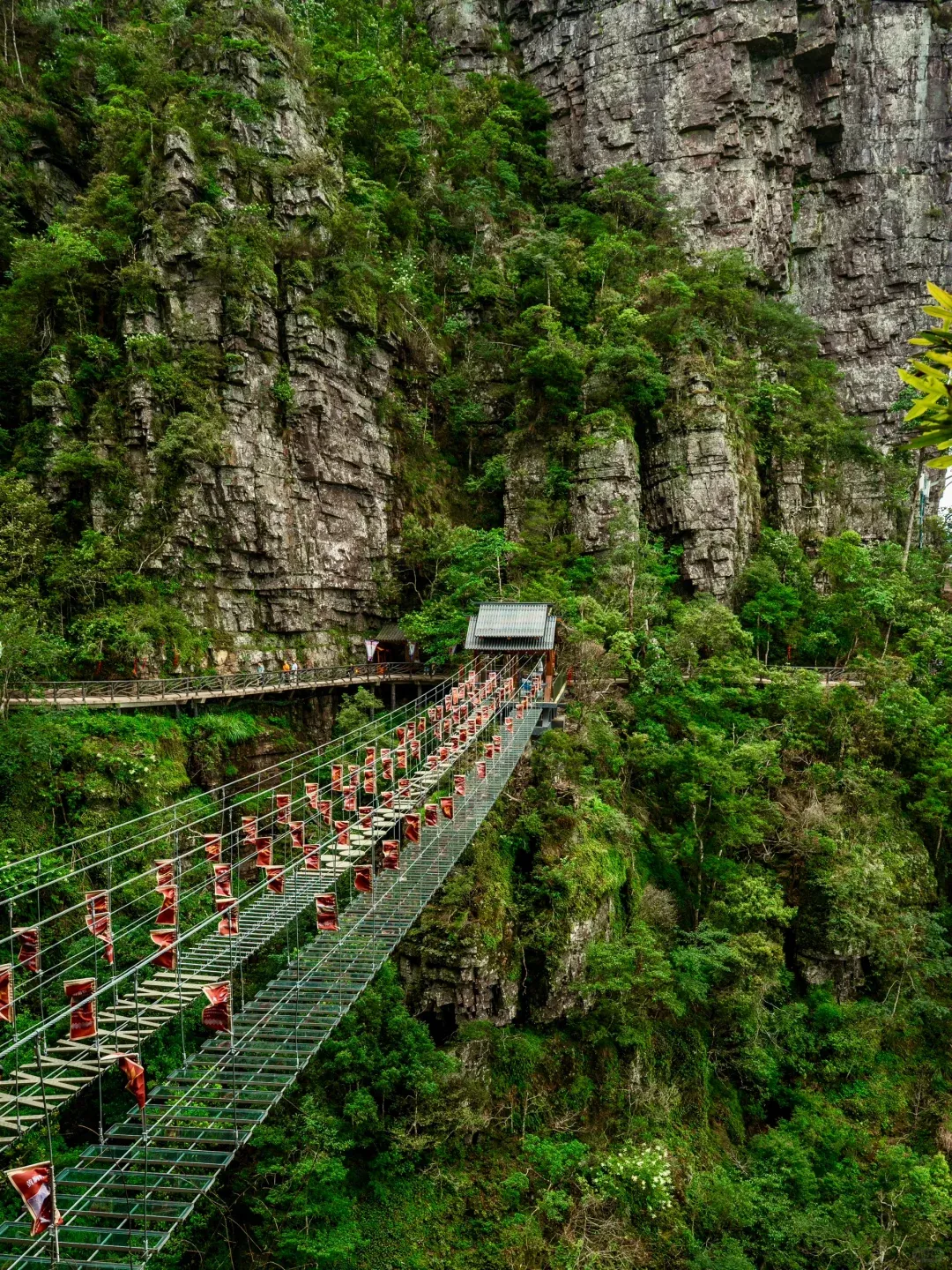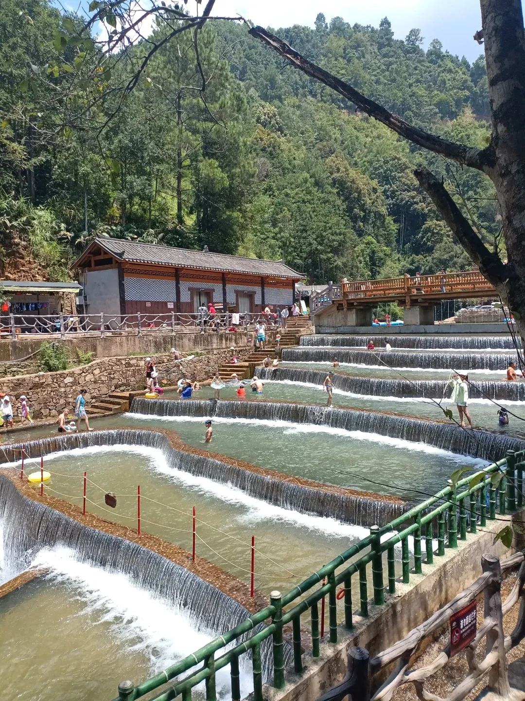 溪谷贯穿景区,形成梯级瀑布与深潭