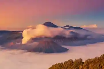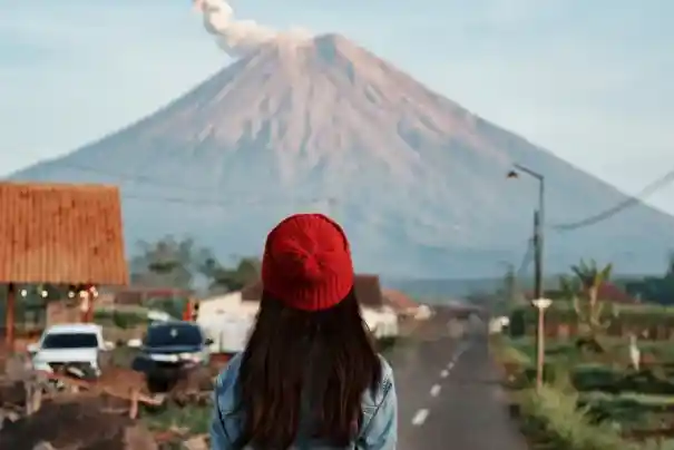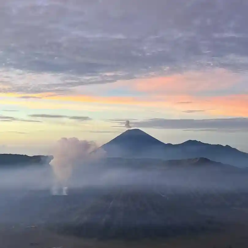 塞梅鲁火山小镇: 网红机位远眺爪哇之巅“小富士”,看粉色烟柱为黎明加冕,定格最温柔火山剪影