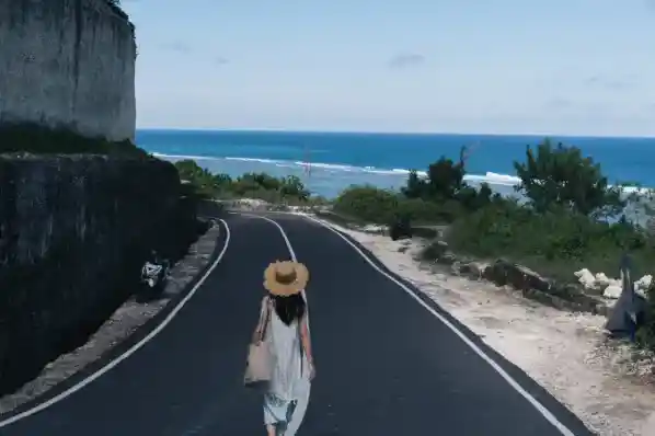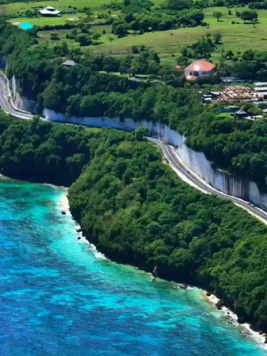 10:00-11:00--参观【悬崖公路+潘达瓦海滩】(游览约1小时),巴厘岛悬崖公路蜿蜒曲折地镶嵌在峭壁之上,一侧是深邃蔚蓝的大海,波光粼粼,另一侧则是郁郁葱葱的热带雨林,绿意盎然。行驶在这条公路上,仿佛穿梭于天地之间,既能感受到海风拂面的惬意,又能领略到自然风光的壮丽与神秘。通过悬崖公路来到巴厘岛众多隐秘的海滩之一潘达瓦海滩(Pantai Pandawa),它是一片弯曲的白色沙滩,绵延近800米,位于巴厘岛布吉岛南部海岸,非常小众。