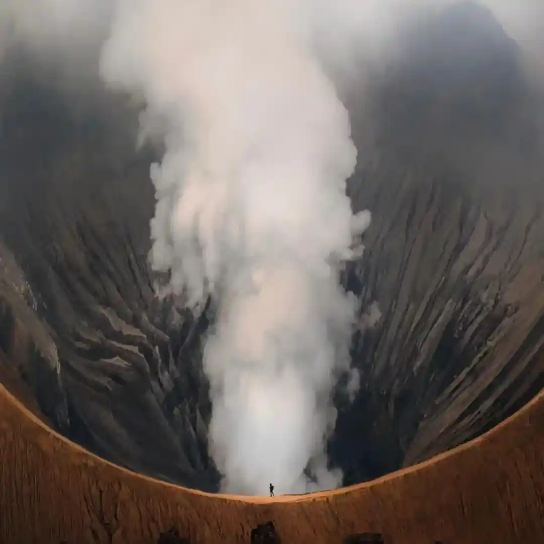 布罗莫火山是腾格尔山中心的一座活火山,有着如月球表面般令人生畏的地貌,是印尼最为壮观的风景之一。巨大的腾格尔火山口直径达10公里,陡峭的山体笔直地矗立在辽阔的熔岩沙平原上。从火山坑突现出来的就是浓烟滚滚的布罗莫火山(2329米),它也是整个高原的灵魂。这片荒无人烟的地带给人以世界尽头的感觉。