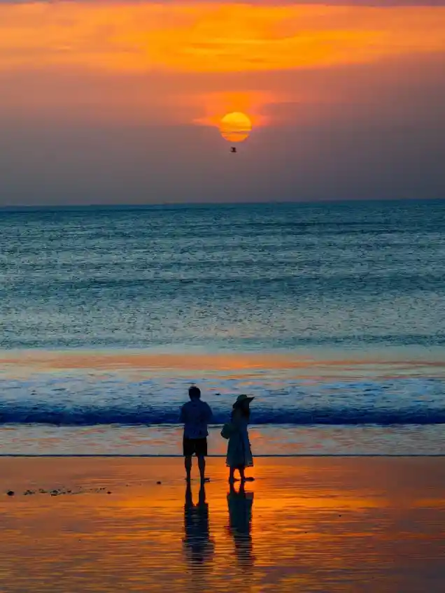 17:00--来到【金巴兰海滩观日落+沙滩BBQ晚餐】夕阳下、烛光中、悠扬的印尼民歌、金巴兰海滩的魅力是无法令人抗拒的。海景落日、沙滩、歌手民谣、美食、点点烛光,无限浪漫。把巴厘岛旅游带入一个新的境界。亦或找一把椅子,舒适的靠着,看着夕阳西下。看着周围追逐海浪的游人,不论是感叹岁月的流逝,或是静静的发呆,都是不错的。如若你旁边正好坐着你的那个TA,那么,唱一首俗边大江南北的《最浪漫的事》那也是醉了呢。此时宜表白,求婚等等……一边欣赏落日美景一边享用沙滩美味BBQ烧烤餐,绝对让你感觉无比浪漫和惬意。