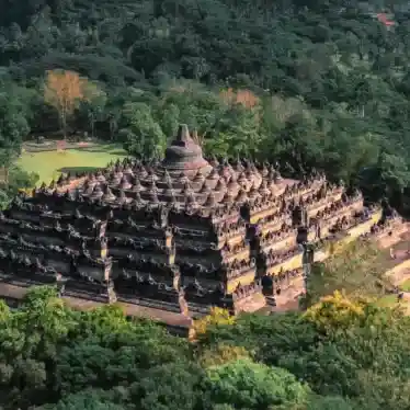 14:30-16:30--游览被联合国教科文组织列为世界遗产,也是名列世界七大奇景之一的【婆罗浮屠】(游览1.5小时)。婆罗浮屠大约建于公元842年间,这个名字来自梵语「Vihara Buddha Ur」,意思就是「山顶的佛寺」。因为火山爆发,使这佛塔群下沉、并隐盖于茂密的热带丛林中近千年,直到19世纪初才被清理出来。