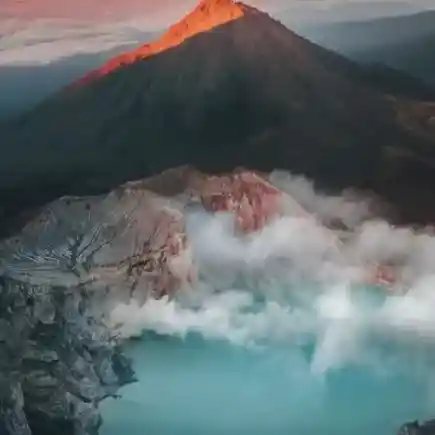 伊真火山:深入地狱之门,追寻跃动的蓝色魔焰,触摸世界上酸度最高的翡翠湖