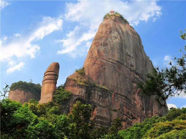 午餐后前往【阳元石景区】阳元石景区/水上丹霞景区(必选小交通内含游船)阳元石是一个酷似男性生殖器的天然石柱,高28米,直径7米,是世界上最大的性图腾,有天下第一奇石之称,阳元山下有一个自然村落“断石村”,这里的新生儿男女比例为9比1,据说乃阳元石之灵气所。【阴元石景区】阴元石(必选小交通内含游船)被称为天下第一女阴的奇景的阴元石,该石隐藏于深山幽谷之中。1998年才被发现。石高10.3米,宽4.8米。其形状、比例、颜色简直是一具扩大了的女阴解剖模型,被示为“母亲石”、“生命之源”。阴元石,又称“处女渊”、“少阴石”、“玉女贞石”,坐落在世界地质公园--丹霞山中,是一个酷似成人女性生殖器的天然石洞。