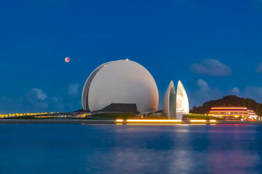 ●打卡珠海网红地标【日月贝(不入内)】珠海最大的一家剧场,也是坐落在广东沿海的一家大型剧场。这是一个有一大一小两个“贝壳”组成的漂亮、动听的图案,又叫“日月贝”。