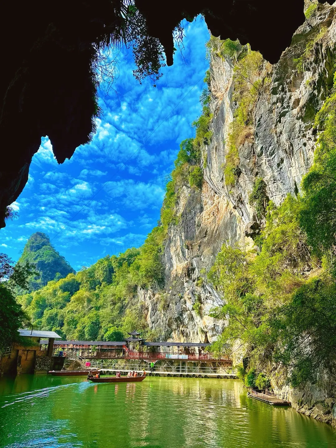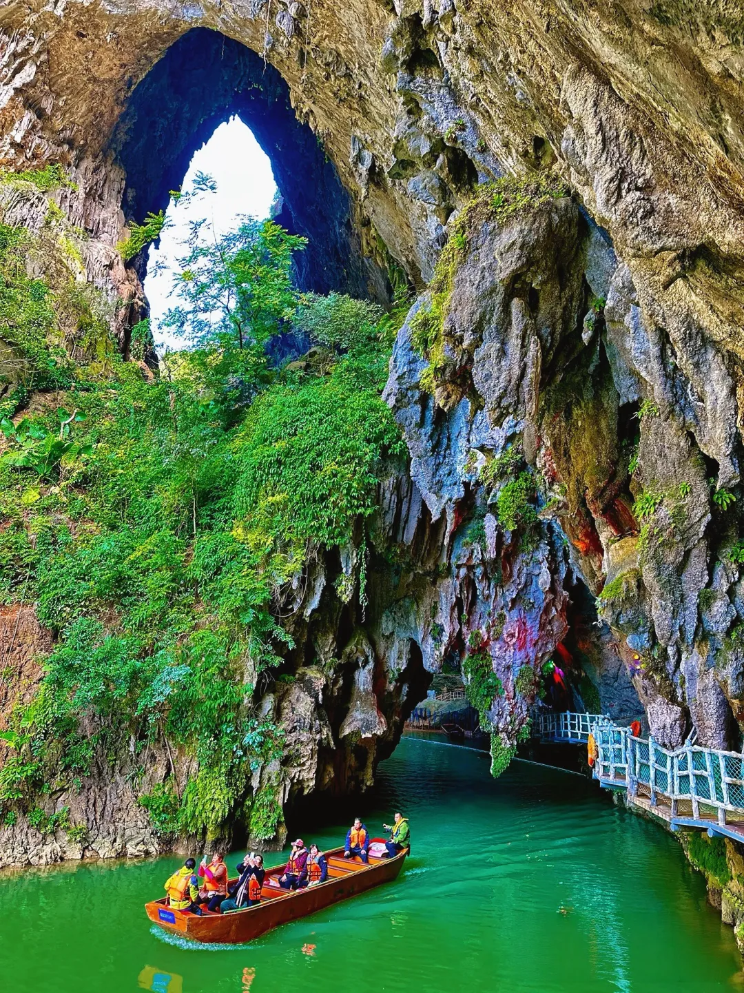 ●午餐后,前往游玩【华南第一天坑】的【洞天仙境】由一个独具特色的天然溶洞、一条清澈的黄花溪、一个疑是世外桃源的古村落组成,是一个溪流穿山而过的岩洞,乘船游览,流程约200米。景区在原有的基础上,耗巨资由国外顶级设计团队鼎力打造的“亚洲首创-溶洞悬空玻璃栈道”,该栈道为全玻璃构建,悬空洞内绝壁之上,高达近百米,俯瞰全洞,惊险刺激(玻璃栈道升级改造中,只能远观,不能上桥)单程游船:在洞天仙境乘坐小船,荡漾在碧波之中,欣赏两岸的美景,放空心灵,享受此刻难得的清闲。单程游船:在洞天仙境乘坐小船,荡漾在碧波之中,欣赏两岸的美景,放空心灵,享受此刻难得的清闲。