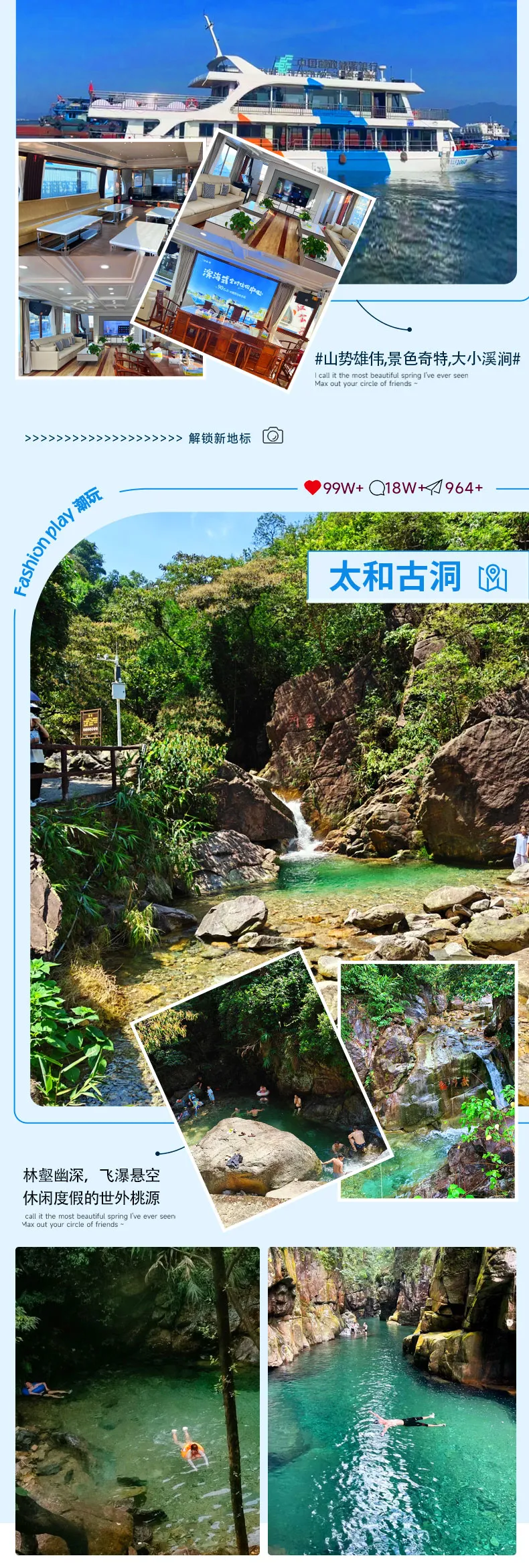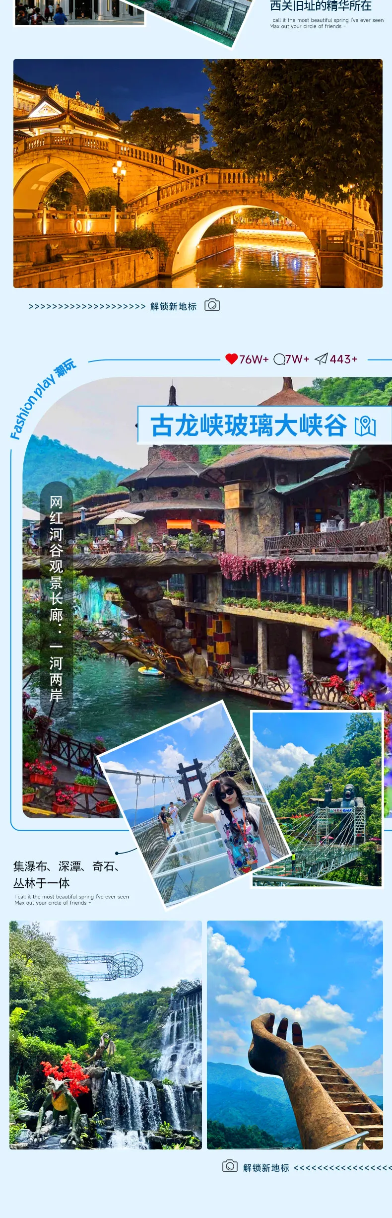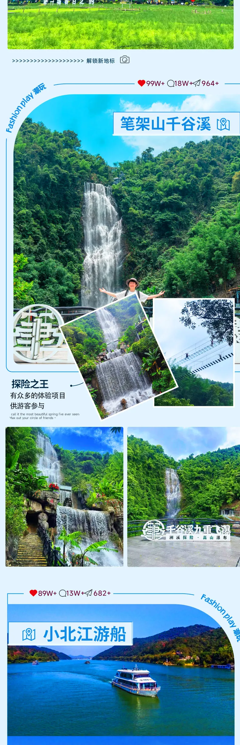 7、必消套餐:古龙峡云天玻霸+玻璃桥+扶梯+小北江游船+洞天仙境单程游船=299元/人,报名时交付。