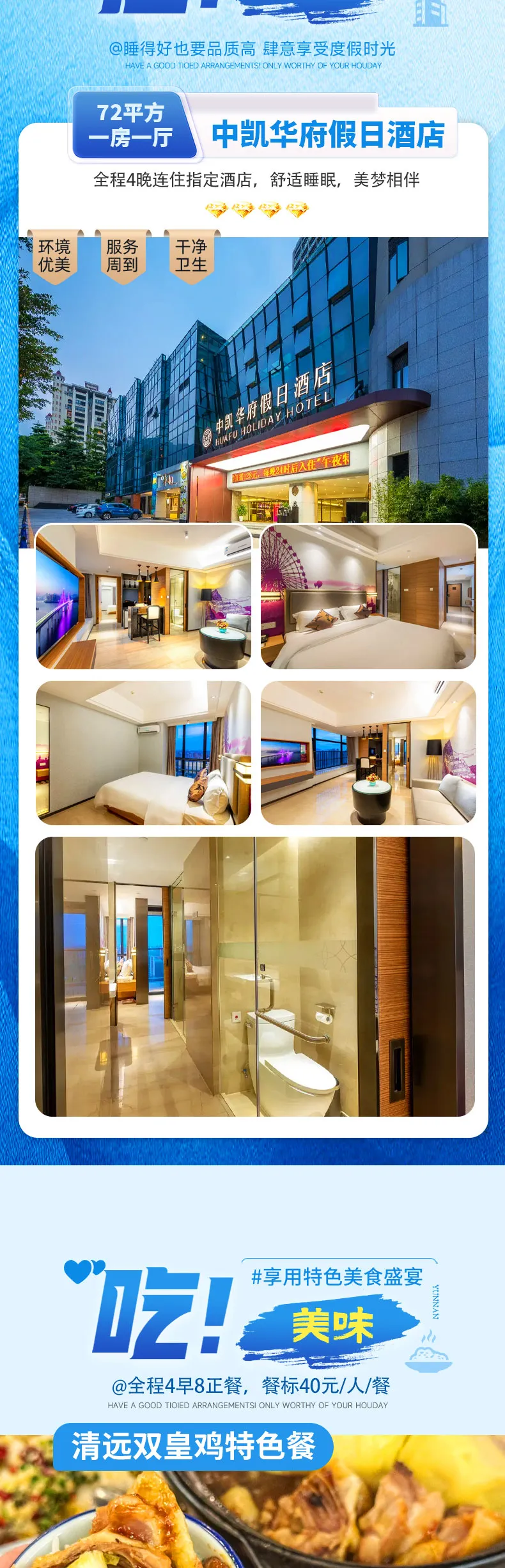 【尊贵下榻】:全程4晚连住指定中凯华府假日酒店72平方一房一厅住宿,舒适睡眠,美梦相伴