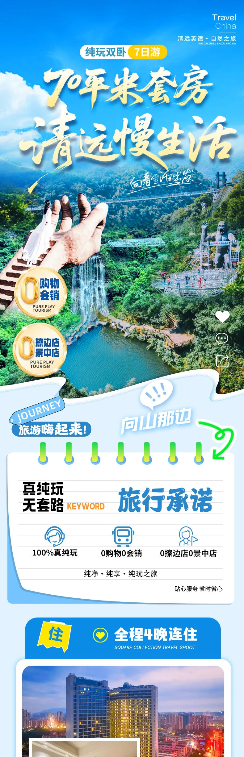 『70平米套房连住不挪窝』清远英德纯玩双卧7日游·全程指定网评四钻酒店·一价全含无套路·餐标40元/人·只玩精华·打卡清远核心大牌景区·网红美拍