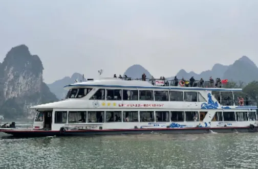 ◎后乘坐豪华三星游轮游览国家AAAAA级景区【全景大漓江风光】(阳朔-杨堤;船游时间约4小时,不含码头电瓶车15元/人自理);可以欣赏到—兴坪佳境、黄布倒影、九马画山、浪石烟雨、杨堤飞瀑、等五大美景高潮,途中会观赏到阳朔最具特色古镇之一【兴坪古镇】您将欣赏到经典的黄布倒影、二十元人民币背景图,让您沉醉与山水之间。沿途青绸绿带,盘绕在万点峰峦之间,其中奇峰夹岸、碧水萦回、削壁垂河、青山浮水、风光旖旎、犹如一幅百里的画卷,奇山秀水美丽风光更让客人们仿佛置身于“船在山中走,人在画中游”的梦境中。(备注:如遇特殊情况无法开船,则升级改为主题船返航,费用无增减)