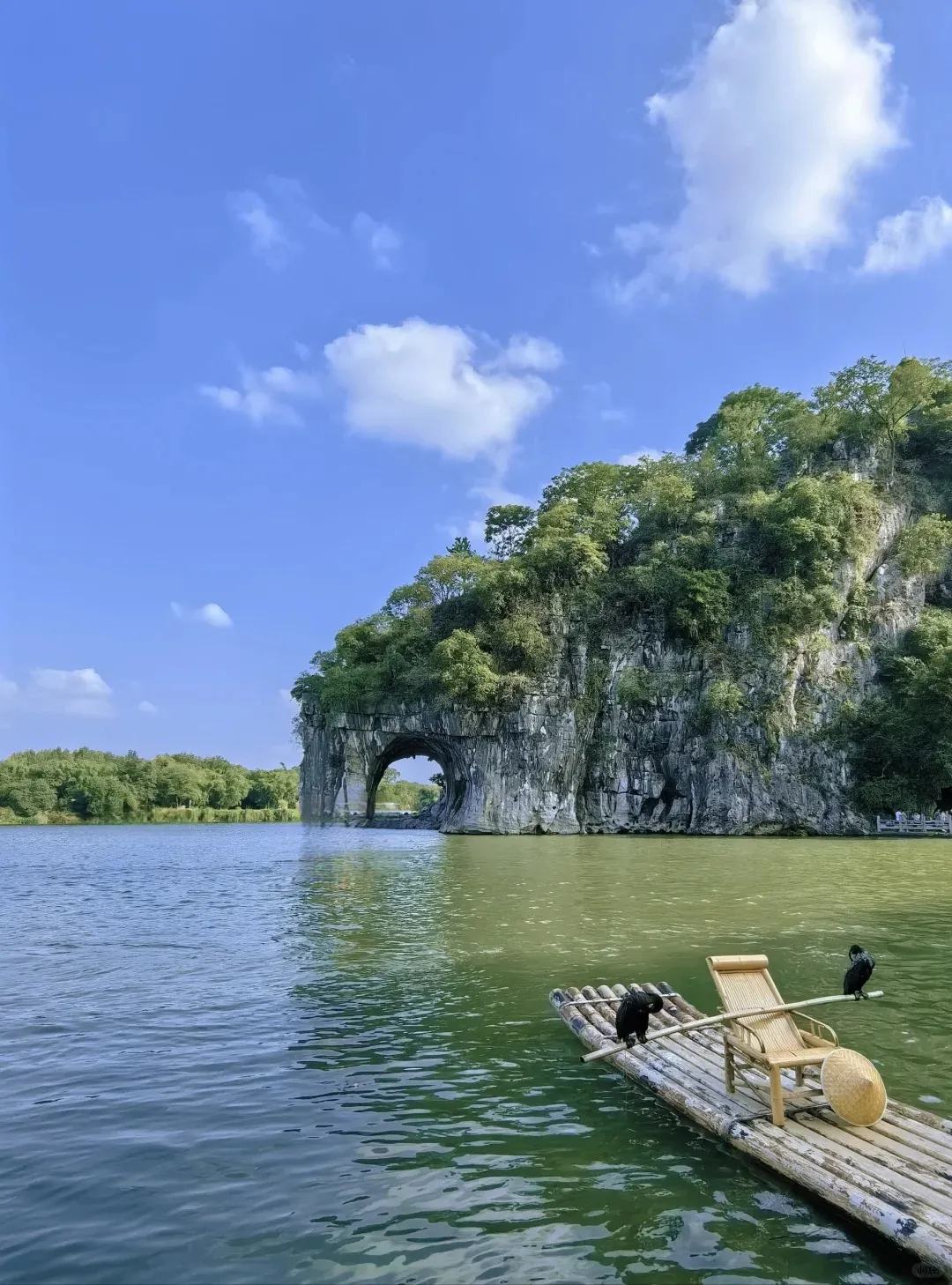 三:来到水月洞的绝佳观赏点,站在这里,你能真切感受到桂林山水的独特魅力,理解为什么它能引得无数文人墨客为之倾倒。这里是整个象山景区的精华所在。象鼻山因山形酷似一头临江饮水的巨象而得名,是桂林山水的象征。象鼻与象腿之间有一个水月洞,江水穿洞而过,如明月浮水,景色十分迷人。我们不仅能从正面打卡象鼻山,还能近距离欣赏这大自然的鬼斧神工之作,感受它的雄伟与神奇。