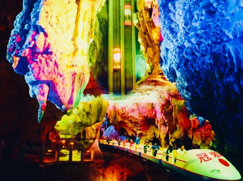 后亲自体验乘坐【世界最长的观光滑道或电瓶车,请自备80元/人自理】。游览AAAA景区【冠岩景区】,位于漓江江畔的一处巨型地下河溶洞,因山体形似紫金冠而得名。冠岩水洞由于长年封闭,景观保护良好,洞内千姿百态的石钟乳、石笋、石柱、石幔更具风采。景区整体规划按高起点、高标准设计建设,洞内配备了自动光控、声控导游系统,小火车、地下河浮桥和观光电梯与洞内奇绝的自然景观相辅相成,让冠岩景区成为国内独具特色和韵味的水、陆、空游览洞穴。亲自体验乘坐【网红小火车】穿越世界最长的观光滑道,也可乘洞内观光电梯俯瞰岩洞美景,探索地下河之奥秘,以全新海、陆、空游览方式之最,游览洞内景色。