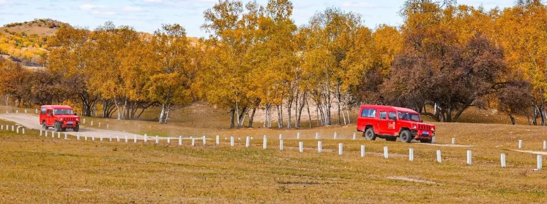 【红色勇士四驱硬派越野车·穿越乌兰布统草原】(380元/人,费用已含,市场唯一有正规手续的越野车)避开人流,专注于人少景美的精华段,看最原始的自然风光,最大程度饱览极致秋色。