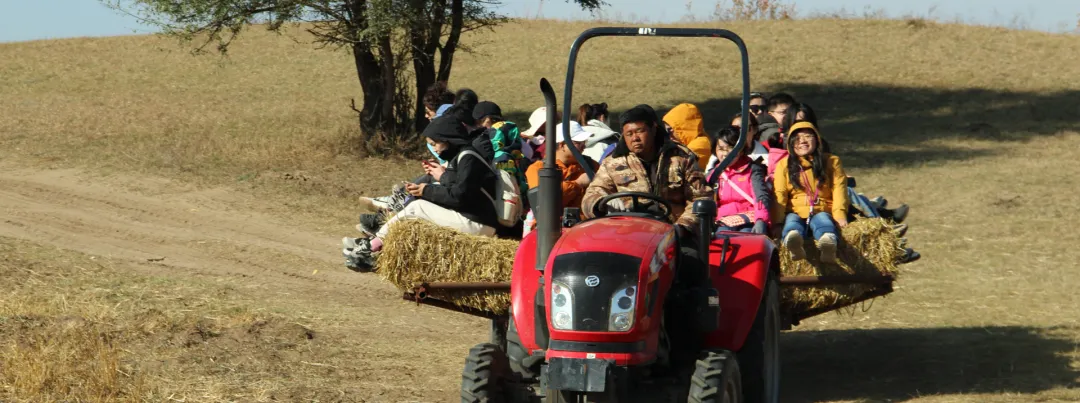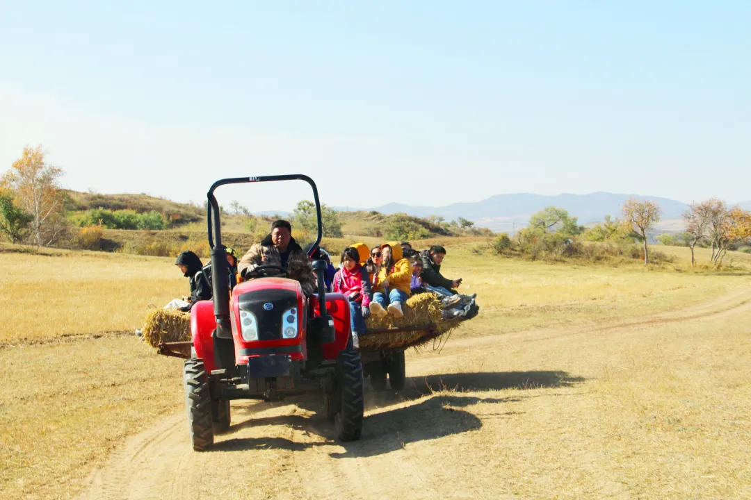 这是城市里寻不到的野趣狂欢!跃上堆满麦草的"移动王座",拖拉机轰鸣着载你扎进金色麦浪。