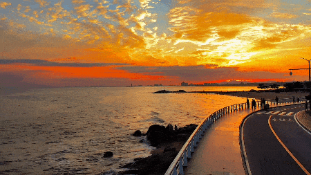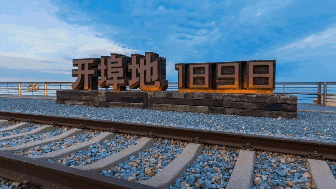 在开埠地的一片芒草中,秋的油画涂向了铁路花海,园区被枫叶、芦花、银杏覆盖,开埠地邮局、古老的火车头、婚礼殿堂海誓花园等打卡地变得色彩斑斓,蓝天白云大海,每一帧都是大片。