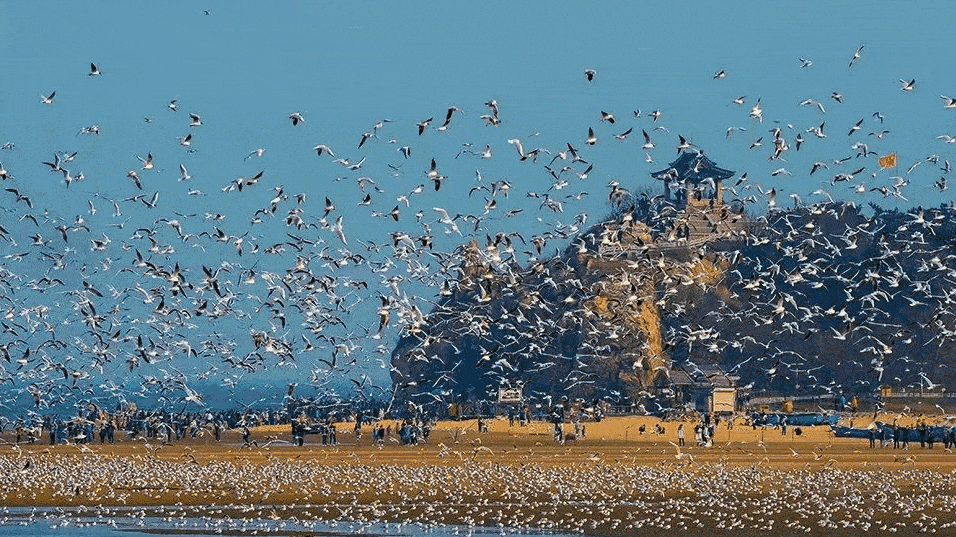 随着秋意渐浓,北戴河鸽子窝的大潮坪湿地迎来了最佳观鸟季,鸟儿们聚集金色的沙滩上,遗鸥、黑嘴鸥、东方白鹳等多种世界珍稀鸟类都可以在这里一寻芳影,非常壮观。
