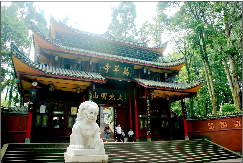 早餐后从酒店出发进入峨眉山【万年寺】风景区,可乘万年寺索道(上行65元/人自理)(也可步行40分钟,沿路欣赏自然风光,呼吸新鲜空气,体验峨眉山“天然氧吧”的舒适)到达普贤菩萨道场——万年寺(10元/人自理),参观完后到达白蛇修道成精的白龙洞、清音阁、一线天,自然生态猴区,清音平湖至五显岗停车场。午餐品尝被誉为非物质文化遗产的乐山当地地道美食-百年老店口福翘脚牛肉,100年来用峨眉山天然好水,加多种草本植物与峨眉山后山放养的两到三岁的黄牛身上的牛肉烹饪而成,TVB电视小城大爱取景地,当地网红餐厅,白龙/东门火锅第一名,受广大好吃嘴的喜欢。