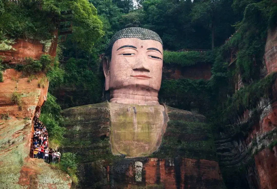 下午乘车前往乐山,参观【乐山大佛】(5A),正面观佛,拜佛,并可观卧佛真身;大佛开凿于唐玄宗开元初年,历时90年才告完成,佛像高71米,比号称世界最大的阿富汗米昂大佛(高53米)高出18米,是名副其实的世界之最,素有“佛是一座山,山是一座佛”之称。游览结束后乘坐旅游车返回成都入住酒店。