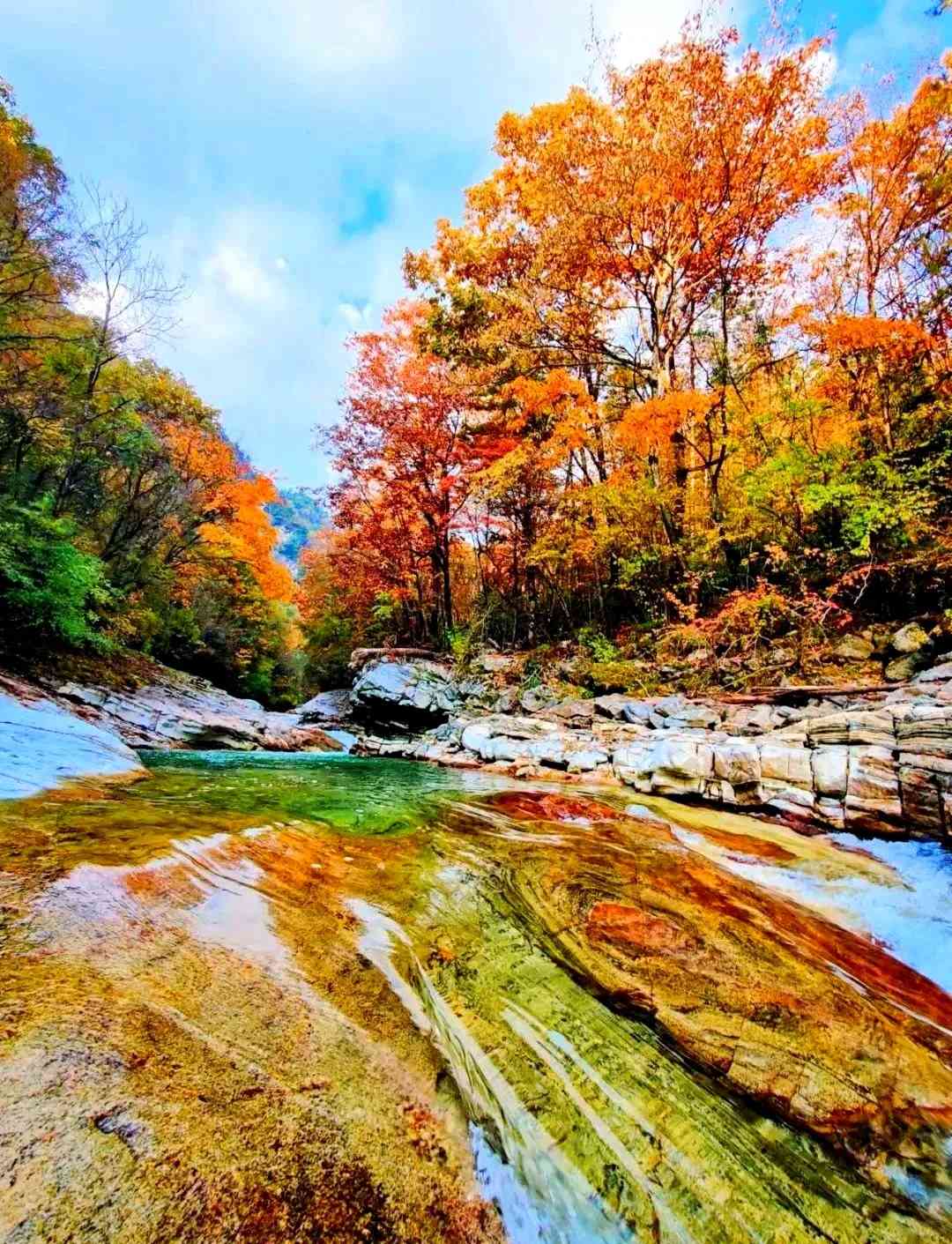 赏溪流瀑潭浸透,品不完的红叶风韵
