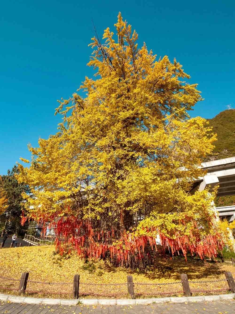 地处留坝县玉皇庙乡石窑坝村的【古银杏树】,经初步测算树龄近4000年,为国家一级保护古树。其胸径为4.4米,树高26米,据有关林业专家排名,此树居全国古银杏第三,西北第一。如今仍郁郁葱葱,被当地人奉为“神树”。每年初冬时节,金黄的银杏叶飘落一地,蔚为壮观。