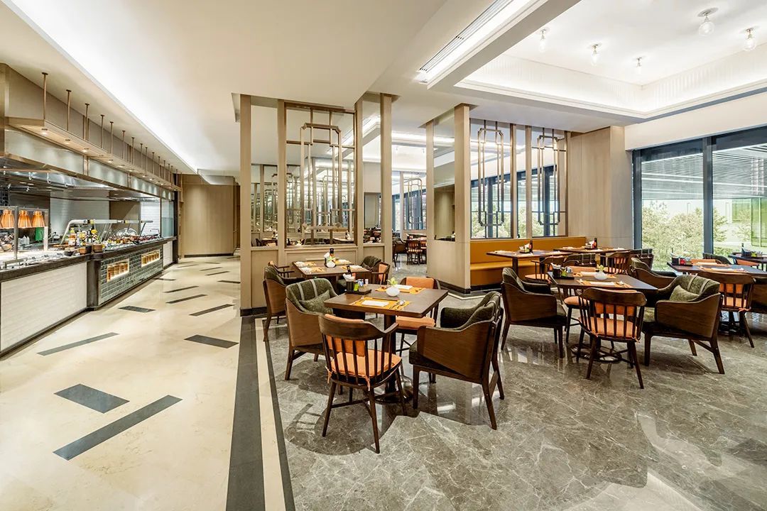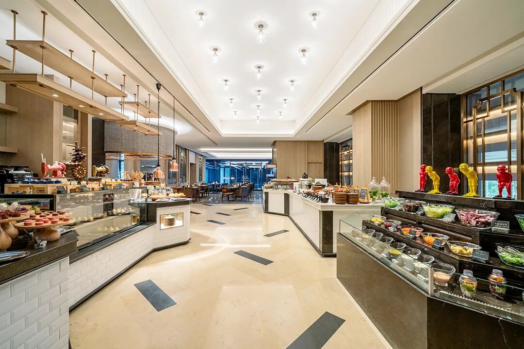 可享用自助早餐、午餐和晚餐的餐厅,设有剧院式现场烹饪台,供应种类丰富的国际风味自助餐及精品单点菜品。此外,餐厅还特别秘制美味派送,让宾客尽情享受美食乐趣。