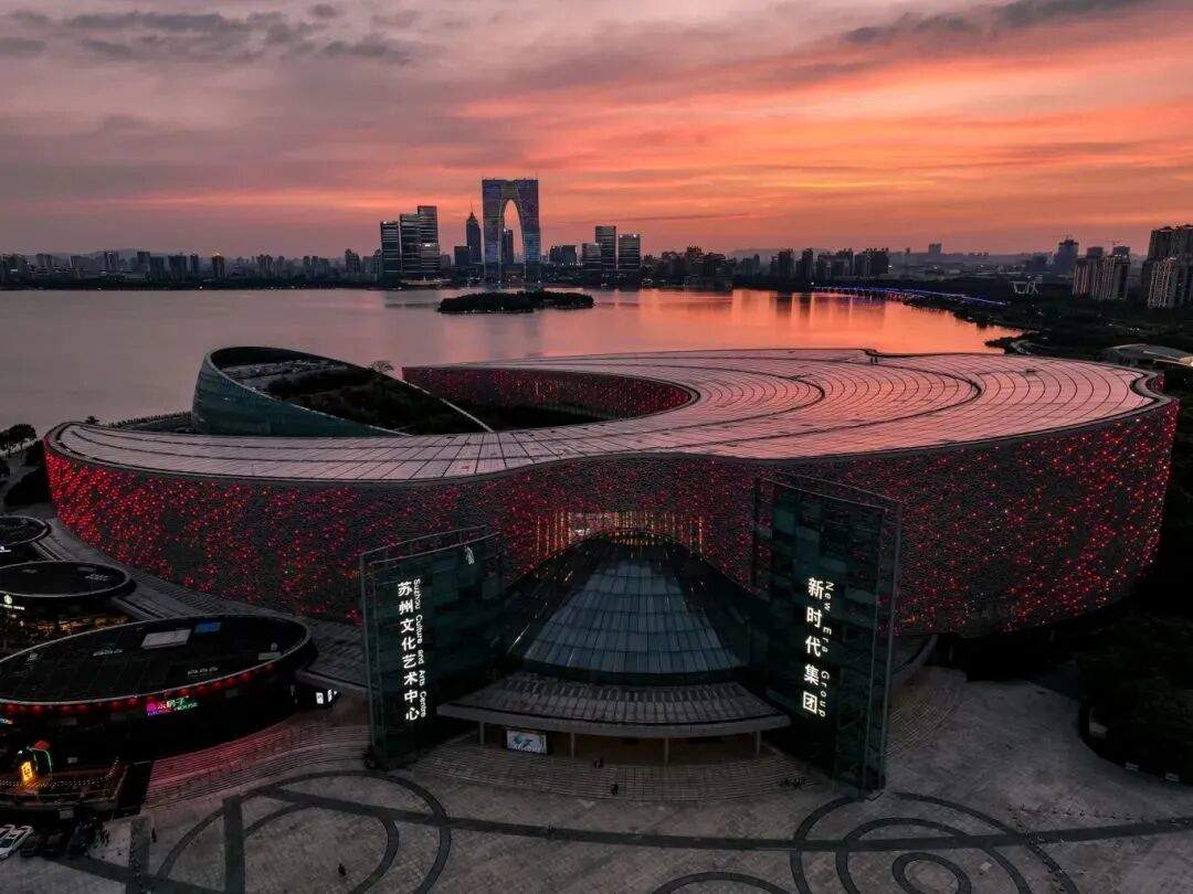 苏州文化艺术中心:苏州“小鸟巢”,中国电影金鸡奖永久评奖基地,苏州交响乐团、苏州芭蕾舞团、金鸡湖美术馆及大剧院、音乐厅、文化馆、8个小剧场聚集,带来文化饕餮盛宴。在临湖《入戏》雕塑,透过“大相框”定格绝美日落。