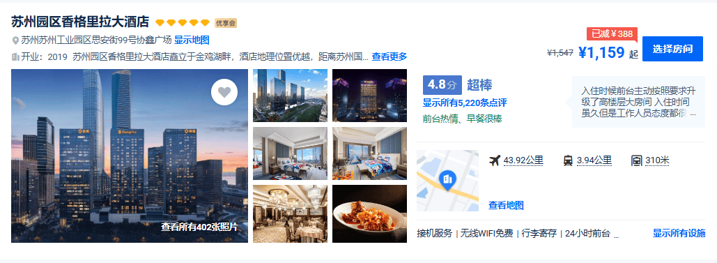 🏨2晚入住苏州园区香格里拉大酒店,近50㎡超大全新客房!