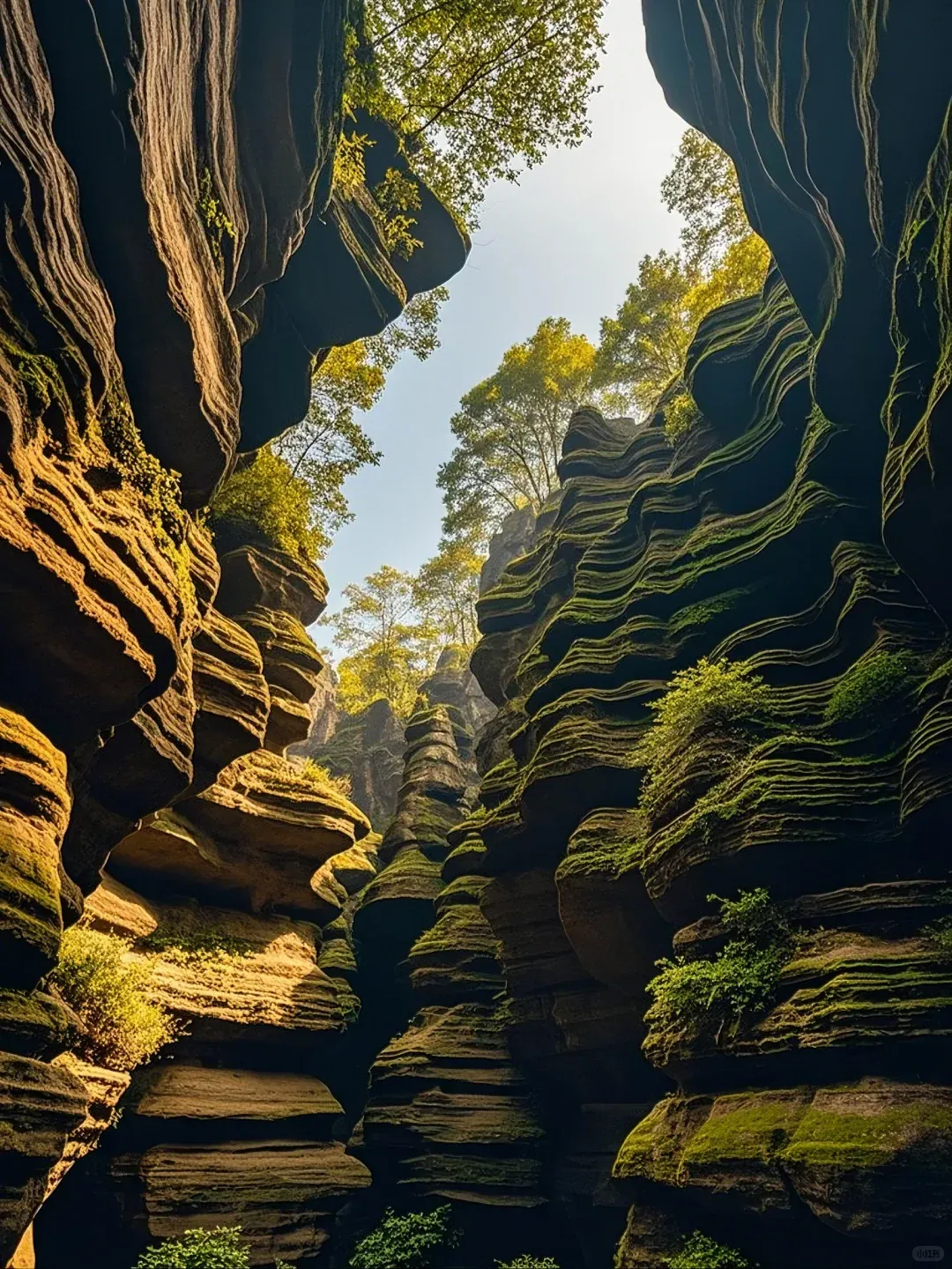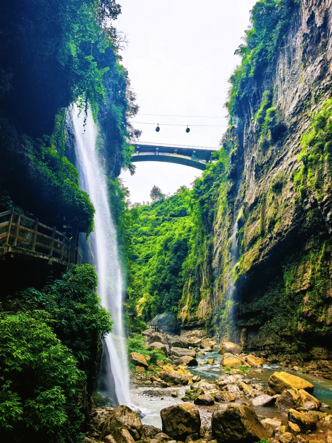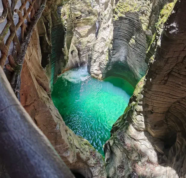 早餐后乘车前往【恩施大峡谷】(车程约1.5小时,游览约2小时【云龙河地缝】全长约20公里,平均深度为100米,地缝上窄下宽呈“八”字状。上宽平均约为16.8米,下宽平均约30米。地缝入口最宽达100余米。湍急的云龙河穿缝而过。地缝两岸绝壁陡峭,相互对峙,雄险无比;瀑布众多,飞溅而下,蔚为壮观;缝底内险滩众多,巨石林立,深潭密布,奇石怪石随处可见。