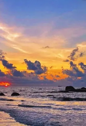 ---早餐后,【南宋古渔村】(约40分钟)海陵岛古寮村:南宋渔村与海丝文化,悠久历史的古村,历史可追溯至800年前。在乡村建设一座艺术馆深入挖掘海陵岛和谷寮村深厚的海丝文化,融入多元文化艺术,助力乡村振兴和全域旅游发展,提高海陵岛乃至阳江市的知名度和美誉度,让谷寮村成为海陵岛旅游的一张闪亮名片。参观【钓鱼台,十二生肖放生台】(约20分钟)登闸坡一绝“崖婆斜 ”,观赏海阔天空,悬崖绝壁,惊涛拍岸的壮观景色。 参观【妈祖庙】(约20分钟)原庙始建于清康熙年间,新修的妈祖庙仍继承中国庙宇建筑的传统作风,雕梁画栋,造工精致。大 门两根蟠龙廊柱,采用全石通雕的工艺,颇有气势 ;屋脊和飞檐上装饰着各种石雕鸟兽,富有民族特征。列入吉尼斯纪录的世界上最长最大的海滩外观按 1:1 比例建造的【南海一号 仿古木船(外观)】了解海上丝绸 之路的生活点点滴滴,感受 800 多年前仿古船的精美与恢弘,体验 800 年后的见证。【十里银滩】(不下水,约20分钟)十里银滩风光毓秀,粗犷壮阔,与石角滩接合成螺线型。参加海上最具代表性项目【出海观光捕鱼】(约40分钟),出海畅游无限大海风光 ,感受“海上人家 ”疍家文化、领略海天一 色景观,收获归客人所有(如遇不可抗力因素影响不能出海 , 改为高尔夫 15 球体验),游览【马尾岛】(约45分钟)半封闭型海岛,海滩长约 1.25 公里,水深适度、海底平缓、沙质优良,有“海水 大浴缸 ”之称 ,适合老人儿童玩乐。海水中安全地带宽阔,颇受游人青睐。