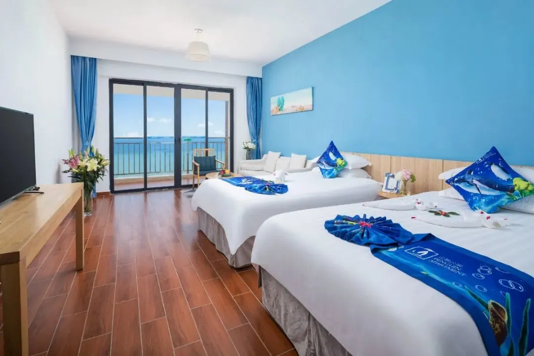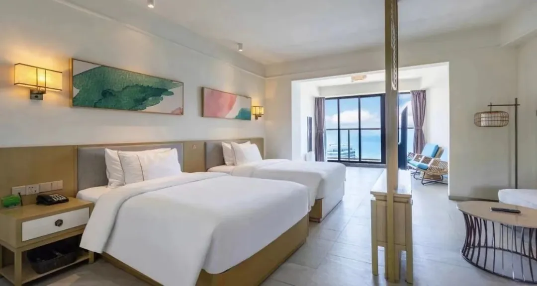 3、住宿:湛江海东温泉酒店+3晚海陵岛北洛秘境休养海景公寓+1 晚鼎龙湾海景公寓,酒店为 2 人/间,标间或大床,(酒店不提供自然单间,如产生单男单女请补单房差 500 元/人)遇酒店满房更为同级酒店,敬请谅解!