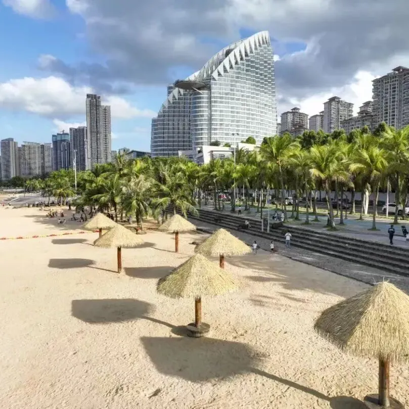 ---前往【金沙湾滨海休闲旅游区】(约45分钟)4A 景区,海岸景观与城市生活完美结合的综合性风景区,可眺望港城地标湛 江奥体中心和海湾大桥,海滩,碧海,蓝天, 白云,阳光、椰林、绿茵,草地,鲜花,碧海,细沙,感受不一样的 海滨风情游览。
