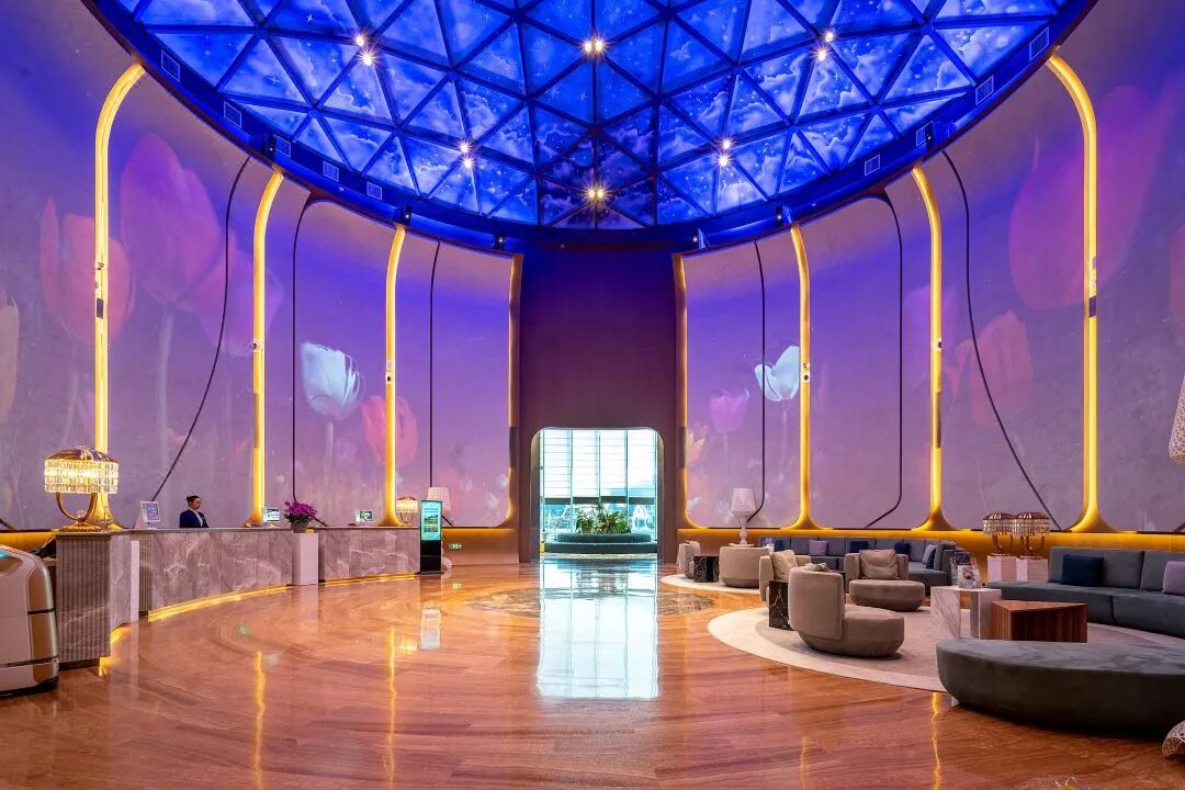 酒店毗邻誉有“中国郁金香最美花海”之称的国家AAAA级旅游景区荷兰花海,是集商务休闲、会展会务、创意餐饮、温泉旅游.康体娱乐为一体的一站式文旅项目。