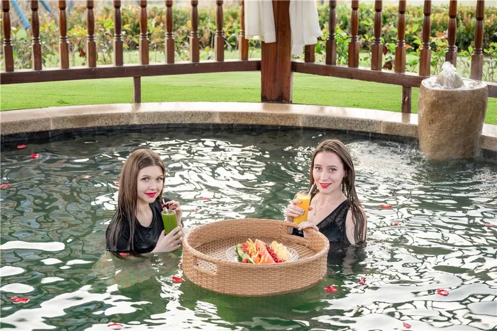 天沐温泉坐拥40多种功能各异大小不一的温泉泡池,户外园林掩映、户内如沐春风