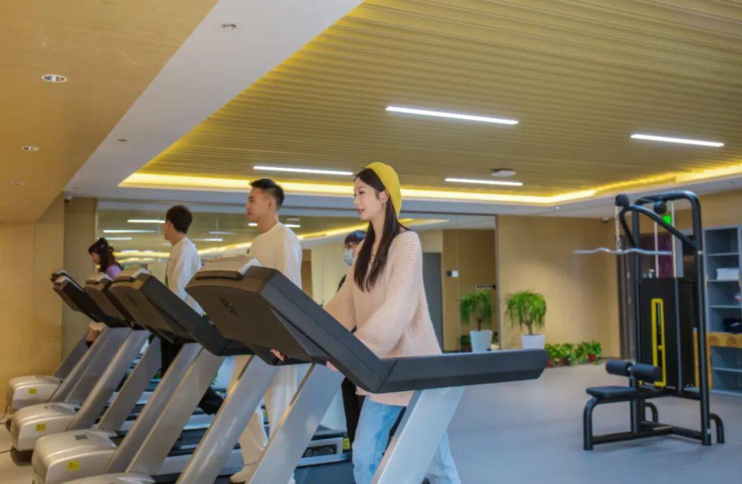 在跑步机上挥洒汗水,让器械唤醒沉睡的肌肉