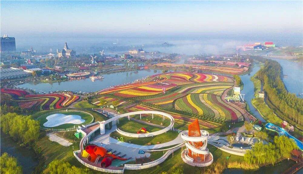 酒店享用自助早餐;上午游览重点游览江苏省四星级乡村旅游点——【荷兰花海】(门票已含,只有爱·戏剧幻城 挂牌218元,自理优惠60元/人,约2.5小时)大丰荷兰花海位于江苏省盐城市大丰区新丰镇,该景区以田园、河网、建筑、风车、花海为元素,打造了具有荷兰风情的旅游休闲花园。