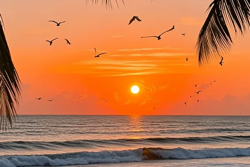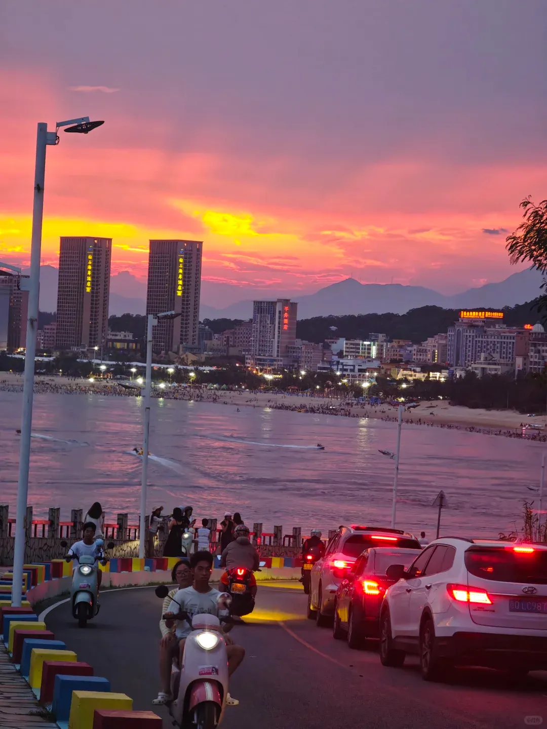 傍晚,伴着绚烂晚霞,听海浪轻拍沙滩