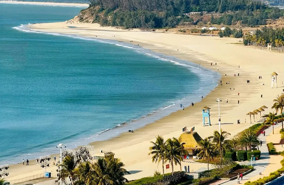 ◈指定时间退房,乘车前往茂名【中国第一滩】(游览约40分钟)之所以称这里为中国第一滩,是因为这里有三个中国第一:首先,这里的林带是全国第一条营成功的最长的沿海防护林带,全长80多公里。国画大师关山月创作的悬挂于北京人民大会堂广东厅巨幅图画《绿色长城》就取材于此,其次,距岸8海里的旅游景点放鸡岛是国家旅游局规划的全国第一个水旅游基地。放鸡岛周围海水的透明度为中国第一,能见度达10米。