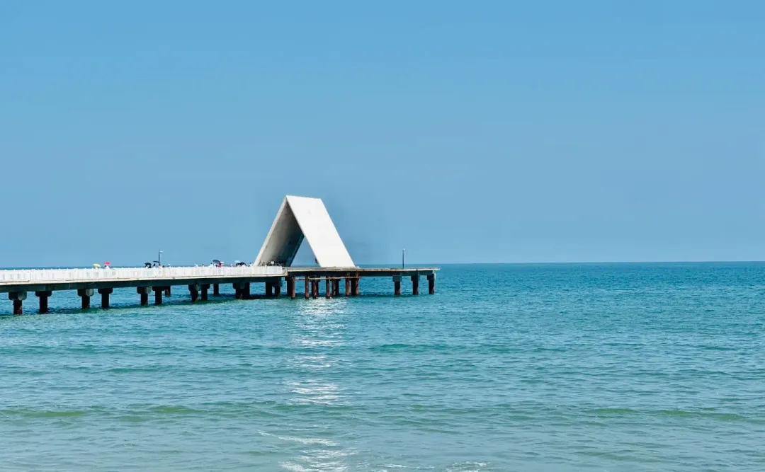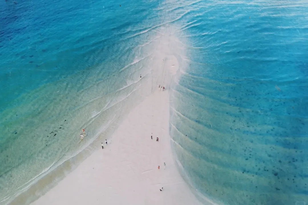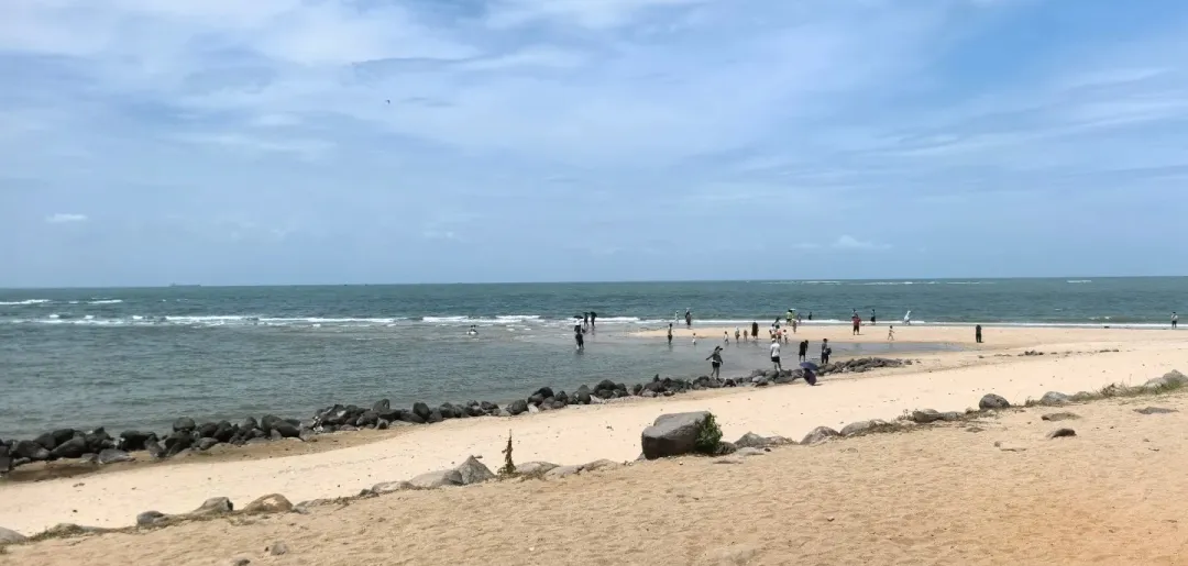 ◈观【合水线】、【渡琼作战指挥部】聆听大海那边令人动容沧桑的故事!合水线,顾名思义,两个大海的交汇处。面朝大海,左边是南海,右边是北部湾。由于不同的洋流、潮汐作用,两个海域的海水不断拍打交织冲击出一堆泥沙。在退潮时,一条黄色的沙坝展露无遗。蜿蜿蜒蜒像一只牛角伸向海的中央。光着脚丫子踩在沙坝上,一脚凉、一脚暖是不是很神奇。因为北部湾的水温常年控制在18°左右,比起南海的水温略微清凉,才造就了这样奇特的体验。