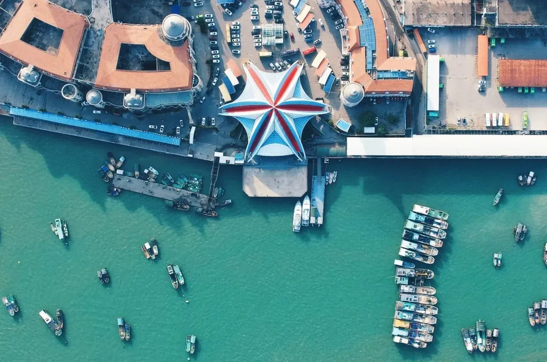 ◈早餐后,前往国家级中心渔港闸坡渔家水产品市场—【丁字码头】(车览),观看早起的疍家渔民在船舱上起吊渔获,有的忙着过秤和记录重量,有的在装运,一派忙碌的景象。