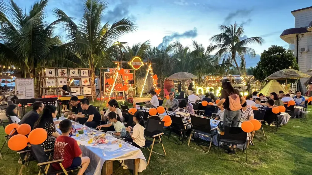 ◈乘车前往吴川,前往【海边露营俱乐部】,开启海边欢乐时光!【篝火晚会+长桌宴】(赠送航拍)(必消套餐),夕阳映海、渔船剪影;暮色中围坐沙滩长桌,品现与湛江特色美食,听渔家传说;夕阳沉后,篝火燃起,伴渔家小调欢唱起舞,亦可漫步观星,享海岸惬意时光。感受这份远离喧嚣的宁静与美好,让旅途的疲惫在海风与烟火中悄然消散。